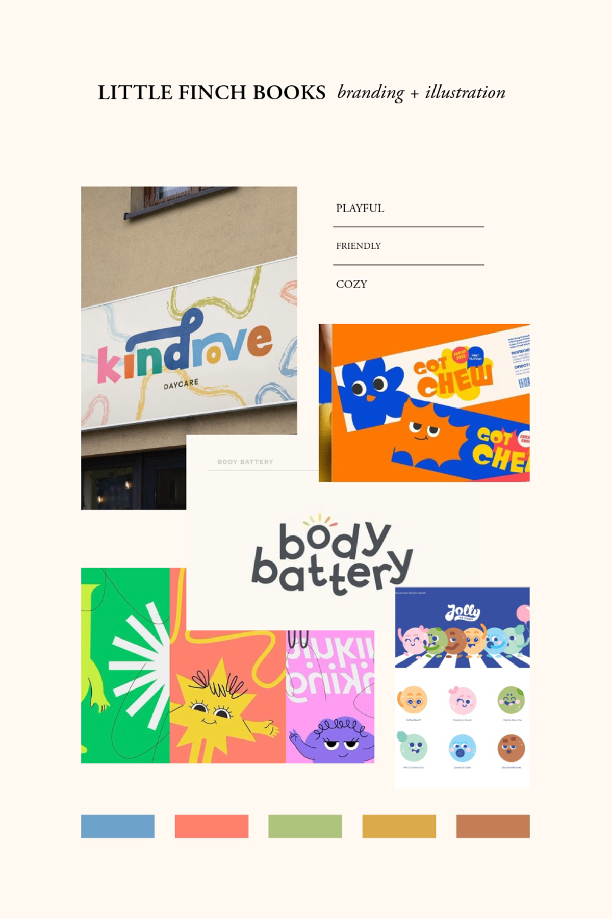 From here... comes a mood-board: this direction is highlighting different brands full of color, illustrations, and playful designs.